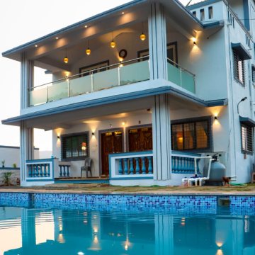 Villa With Private Pool Alibaug is located in Alibaug and offers an outdoor swimming pool and a shared lounge. This villa features a private pool, a garden and free private parking. This air-conditioned villa is equipped with 3 bedrooms, a flat-screen TV, a dining area, a kitchen with a fridge, and a living room.
